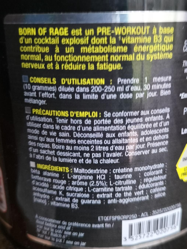 BORN OF RAGE original Explosive pre workout Eric Favre